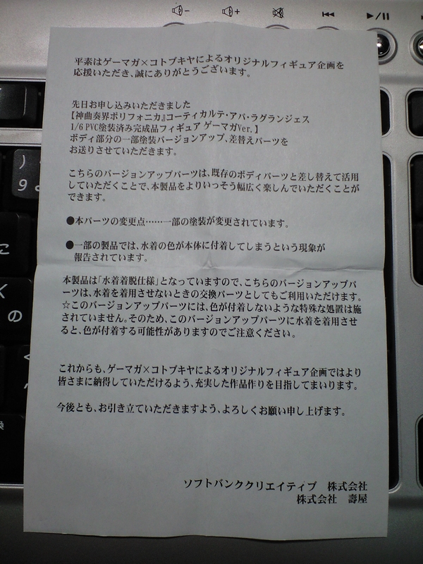 これに関して苦情が在ったのかどうかは知りませんが、購入者に無償でボディ部分が送付されるという事態になった訳であります。