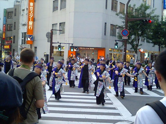 第15話で「激奏」の帰りにこなた達が歩いていた交差点の辺りでYOSAKOIみたいなのを踊っているオバサン集団が居た。